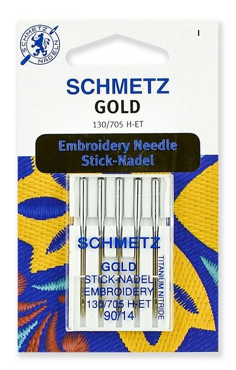 Иглы для вышивки Gold, титаниум Schmetz №90(14). Подходит для вышивания на твердых и плотных материалах.